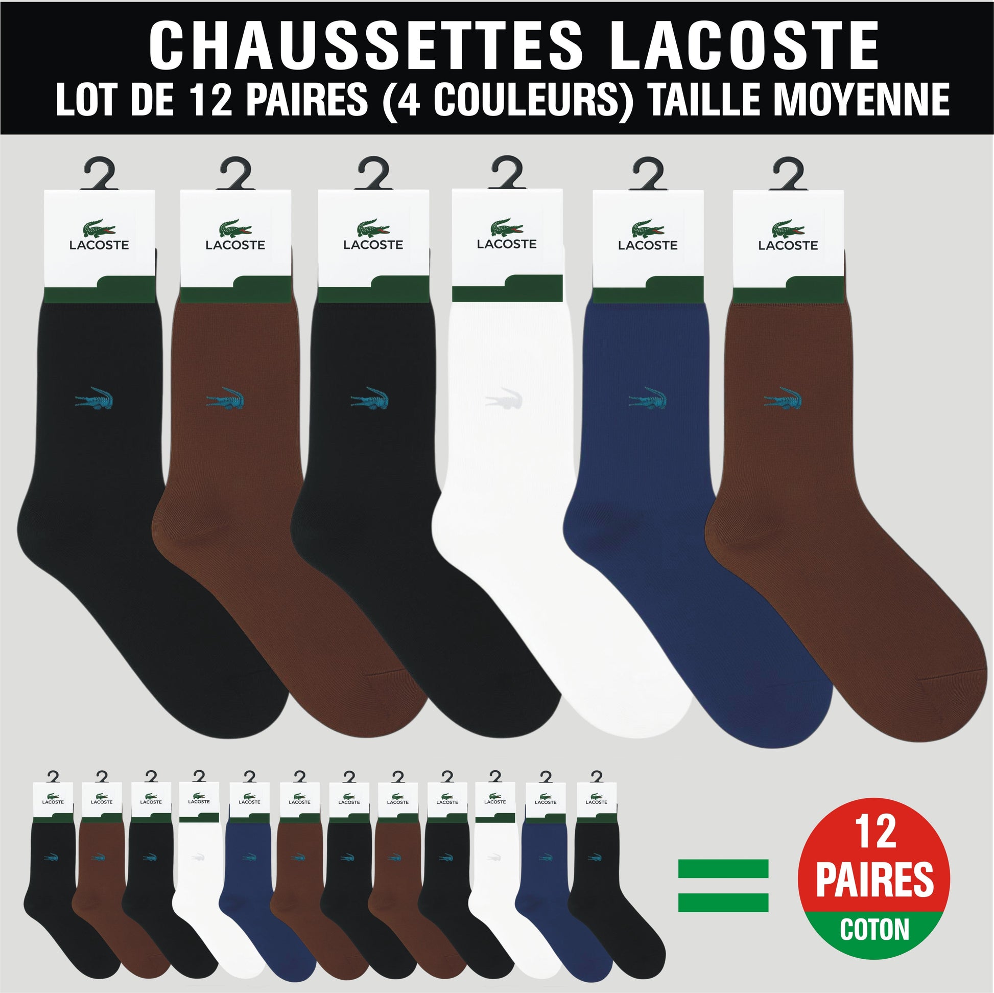 Chaussettes Lacoste – Lot de 12 Paires (Taille Moyenne)