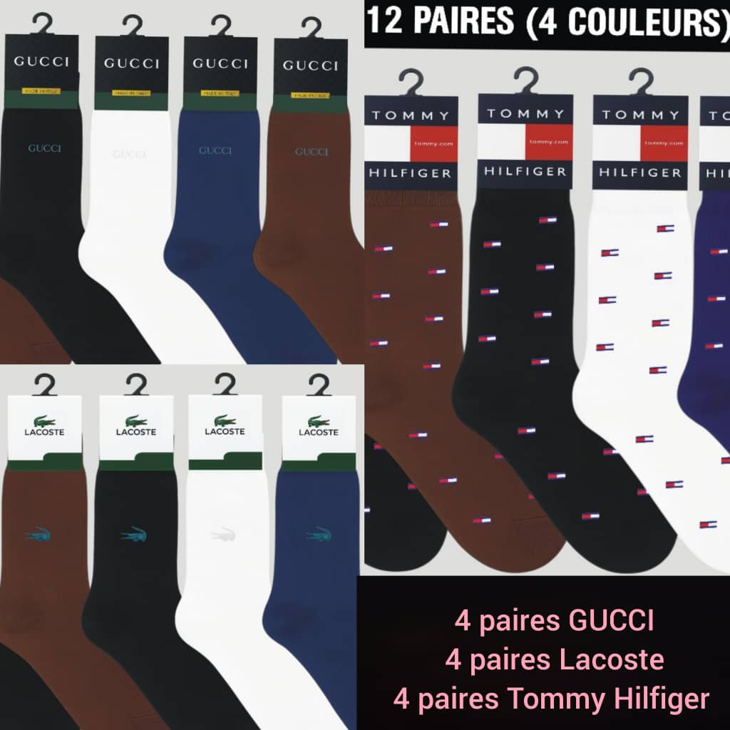 Mixte de chaussettes (Tommy Hilfiger -Lacoste-Gucci) Lot de 12 taille moyenne