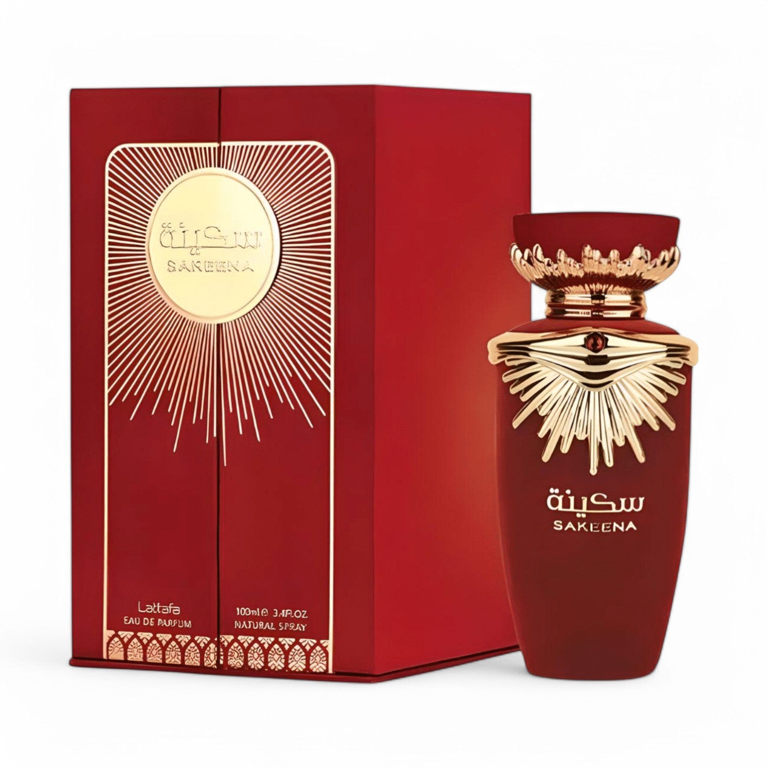 Découvrez Sakeena, une fragrance qui incarne la grâce et le raffinement. Présenté dans un flacon luxueux d'un rouge profond et orné de détails dorés, ce parfum de Lattafa est une ode à la féminité moderne, alliant fraîcheur, douceur et une touche de gourmandise.