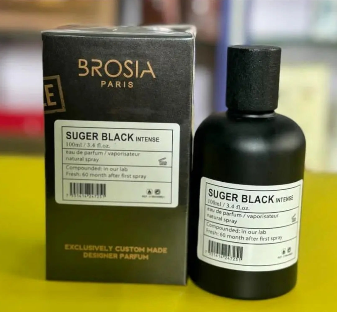 Le nom "Suger Black Intense" évoque un contraste fascinant entre la douceur du sucre et la profondeur de l'obscurité, suggérant un mélange de notes gourmandes et de notes plus sombres et mystérieuses. Attendez-vous à un parfum qui s'ouvre sur une touche de douceur sucrée, qui se transforme ensuite en un cœur riche et opulent, et qui s'achève sur des notes de fond profondes et boisées, peut-être avec une touche d'encens ou de cuir.